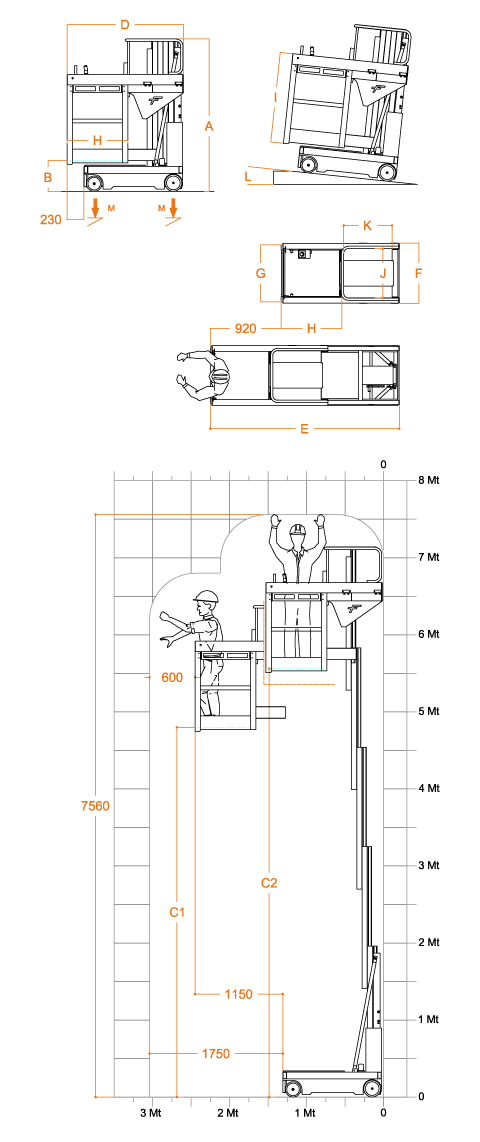 • C2 — Maximum platform height (closed basket): 5560 mm